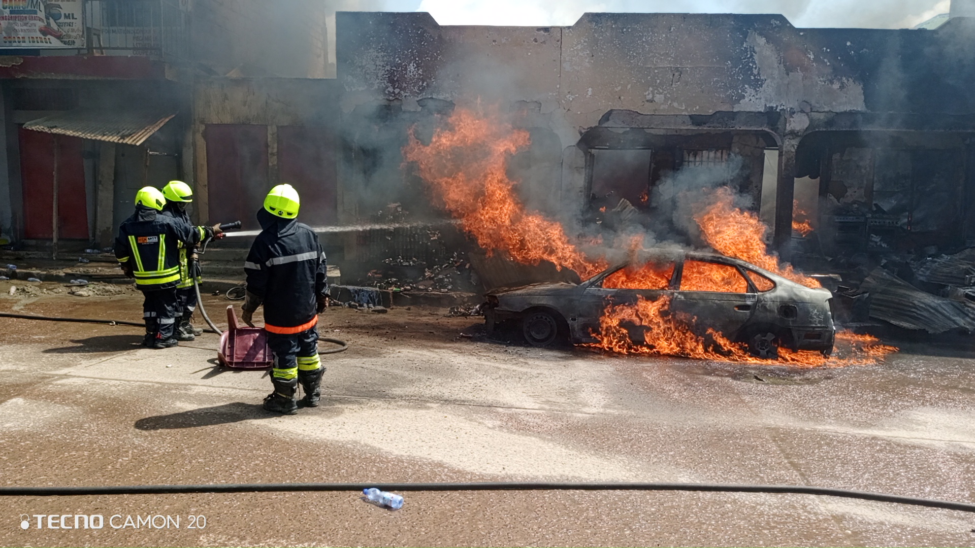 Un incendie tragique s’est déclaré à Matadi ce lundi 11 Novembre 2024 aux environs de 14h00, sur la place Dorcas, lorsqu’une Toyota Avensis chargée de bidons d’essence en provenance de Muanda a pris feu. Le conducteur tentait de résoudre un problème électrique du véhicule lorsque les flammes se sont rapidement propagées à deux grands bâtiments voisins, entraînant la destruction de tout ce qui s’y trouvait.Malgré l’alerte donnée aux pompiers, leur intervention a été tardive.