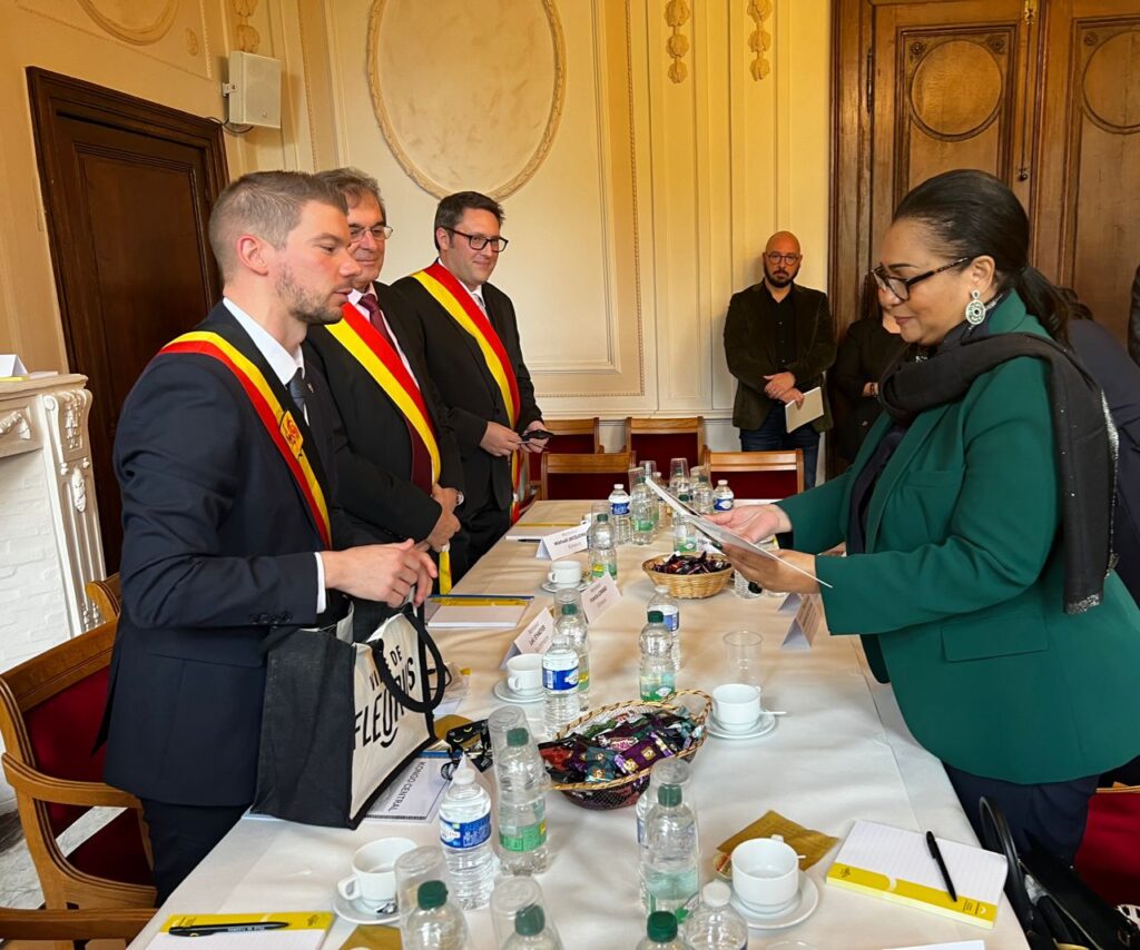 Le Collège communal, les Conseillers communaux Messieurs Edgar Yanga et Boris Puccini, ainsi que la Direction générale de la Ville de Fleurus ont reçu la Ministre Provinciale de la Province du Kongo Central en République Démocratique du Congo en charge de l’Education, elle est notamment venue visiter la Bibliothèque « La Bonne Source » pour échanger avec l’ensemble de l’équipe sur les tenants et aboutissants quant à la gestion d’une telle infrastructure et des projets qui y sont développés.