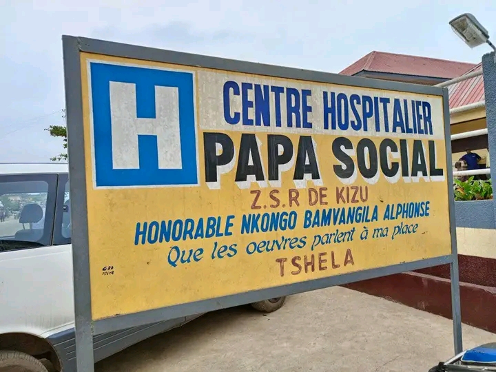 Le nom du centre hospitalier, c’est Papa Social. Il est dans la cité de TSHELA et est situé le long de la route principale. Avec plusieurs bâtiments dont certains en étage, le centre a une capacité de 85 lits et offre avec compétences 5 services principaux : la médecine interne, la gynécologie obstétricale, l’imagerie médicale, la pédiatrie et la chirurgie.
